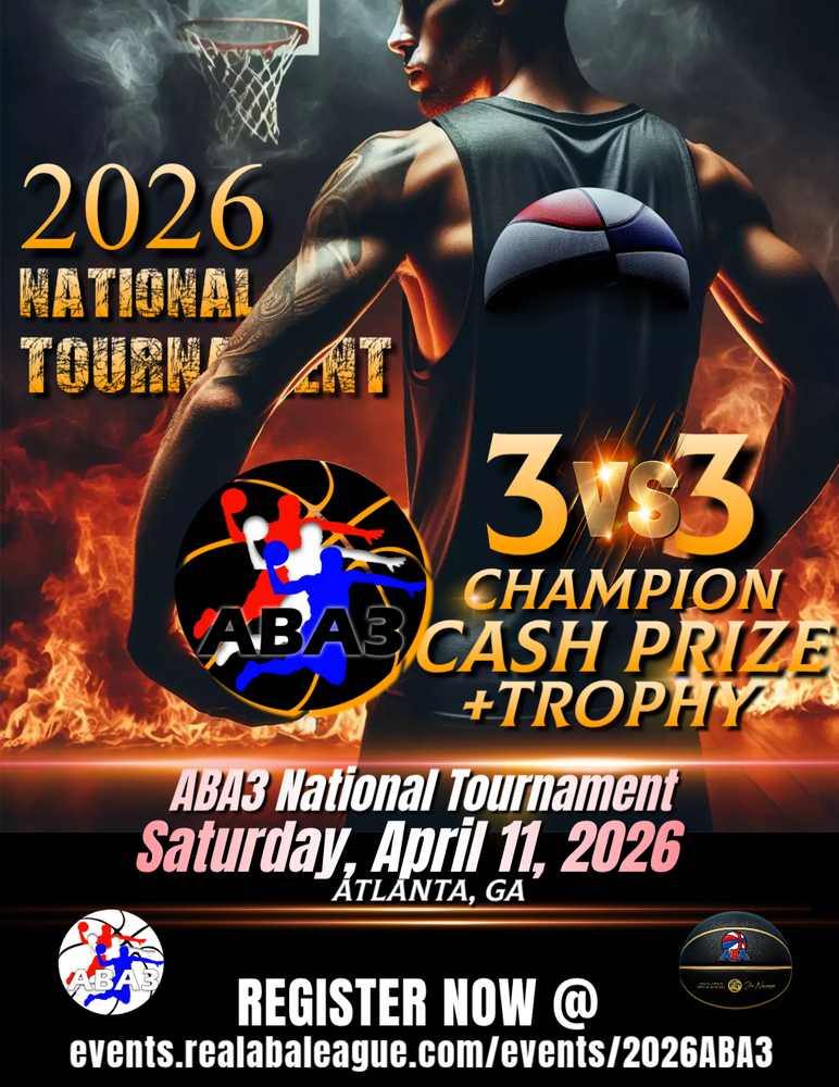 Gather your squad and get ready to bring your A-game to the ABA3 National Tournament in Atlanta! Teams from across the country will converge in Georgia to compete for glory and a cash prize. Don't miss this opportunity to be a part of the historic ABA Championship Weekend and showcase your skills on the court. Limited spots are available, so register now to secure your team's spot in this thrilling event!