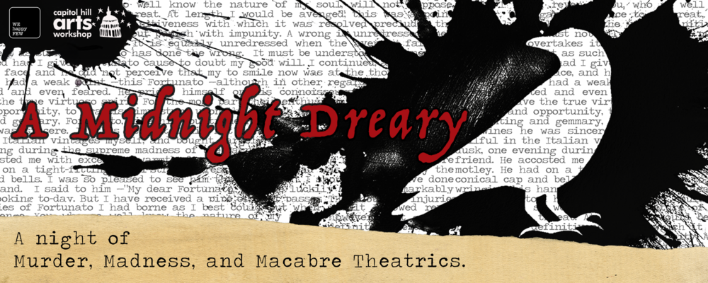 This production is a site-specific piece, originally designed for Spectre Arts and uniquely tailored for each space it's performed in. A Midnight Dreary provides an opportunity to transform a familiar space into something different; something mysterious. Each performance space is selected to both serve the story and to give the audience a chance to experience a familiar and everyday place through a lens of madness, horror, and discovery.​ A Midnight Dreary has been performed in bars, art galleries, homes, and yes, even theatres.
