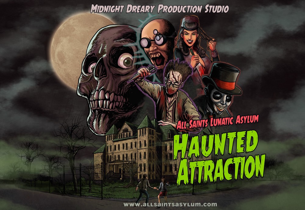 All Saints Lunatic Asylum is a professional year round haunted attraction open for most major holidays and every Friday the 13th.