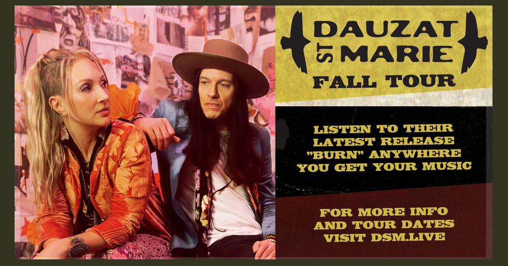DAUZAT ST. MARIE (pronounced “dough-zaht saynt mah-ree”) aren’t just a Singer/Songwriter Americana duo; they’re an experience. This seasoned musical power union between Heather St. Marie and Mat Dauzat weaves soulful Americana tapestries in the form of song - captivating audiences far and wide with their lockstep harmonies and electrifying stage presence. With Heather’s high-octane vocals soaring over Mat’s intricate guitar work and silky vocal harmonies, Dauzat St. Marie’s music paints vivid sonic landscapes. Their songwriting – honest and relatable – touches on themes of love, loss, resilience, nostalgia, and the beauty of the human spirit. Their song “Where Were You?” landed on the 2021 Grammy® Awards ballot in three separate categories – Song Of The Year, Record Of The Year, and Best Pop Duo / Group Performance. Their reputation for unforgettable live performances has deservingly placed Dauzat St. Marie on major tours with legends like REO Speedwagon, Pat Benatar, Jefferson Starship, Marshall Tucker Band, Rick Springfield, and many more… criss-crossing the US and abroad leaving audiences demanding a speedy return.