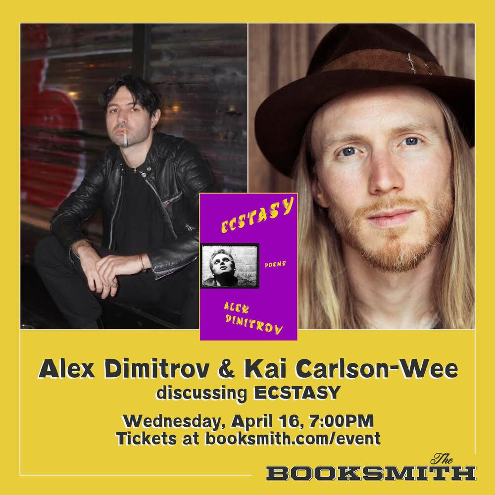 The Booksmith is thrilled to be celebrating poetry month by welcoming Alex Dimitrov to the shop for Ecstasy. He'll be in-conversation with Kai Carlson-Wee. Please join us! RSVP is not required, but appreciated. Seats are limited and can be guaranteed with the purchase of a book.