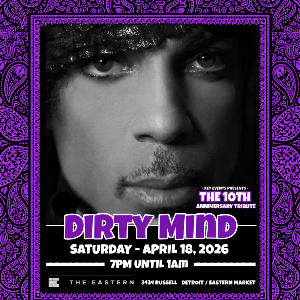 On Saturday April 18th, Key Events delivers DIRTY MIND 10 - an insane Dance Music Marathon featuring All PRINCE MUSIC ALL NIGHT LONG. It's a High-Energy Non-Stop Dance Party unlike any other featuring a bevy of your Favorite Detroit DJs (DJs to be announced) delivering that full-on Purple Vibe designed for True Prince Fans!