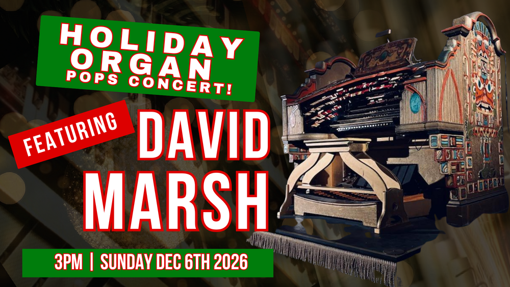 The the Detroit Theater Organ Society’s Organ Pops Concert series closes its 2026 with a tradition: The Holiday Organ Pops Concert, the perfect way to kick start your holiday spirit at the Senate Theater! For over sixty years DTOS has brought in some of the nation's and world's finest organists to harness the power of our Mighty Wurlitzer theater organ. This year, in the Senate's 100th year, we are happy to continue that tradition here in Southwest Detroit!