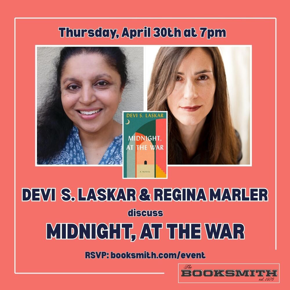 Join us on Thursday, April 30 as we welcome Devi S. Laskar to the store for the release of Midnight, at the War. She will be joined in conversation by Regina Marler. RSVP is not required, but appreciated. Seats are limited and can be guaranteed with the purchase of a book or a $3 sliding scale donation to our program.