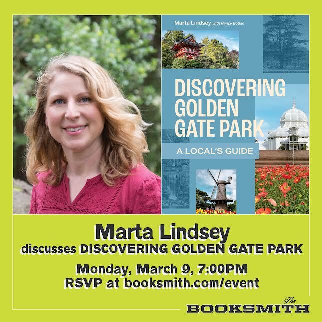 Join us on Monday, March 9th as we welcome Marta Lindsey to the store for the release of Discovering Golden Gate Park. Please join us! RSVP is not required, but appreciated. Seats are limited and can be guaranteed with the purchase of a book or a $3 sliding scale donation to our program.