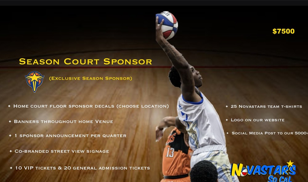 Be the center of attention at every Novastars home game with our exclusive sponsorship package that puts your brand front and center. Elevate your brand visibility both on and off the court with a range of exciting perks: