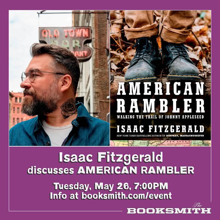 Join us on Tuesday, May 26th at 7pm as we welcome Isaac Fitzgerald for American Rambler. More details to come, but save the date and stay tuned! RSVP is not required, but appreciated. Seats are limited and can be guaranteed with the purchase of a book or a $3 sliding scale donation to our program.